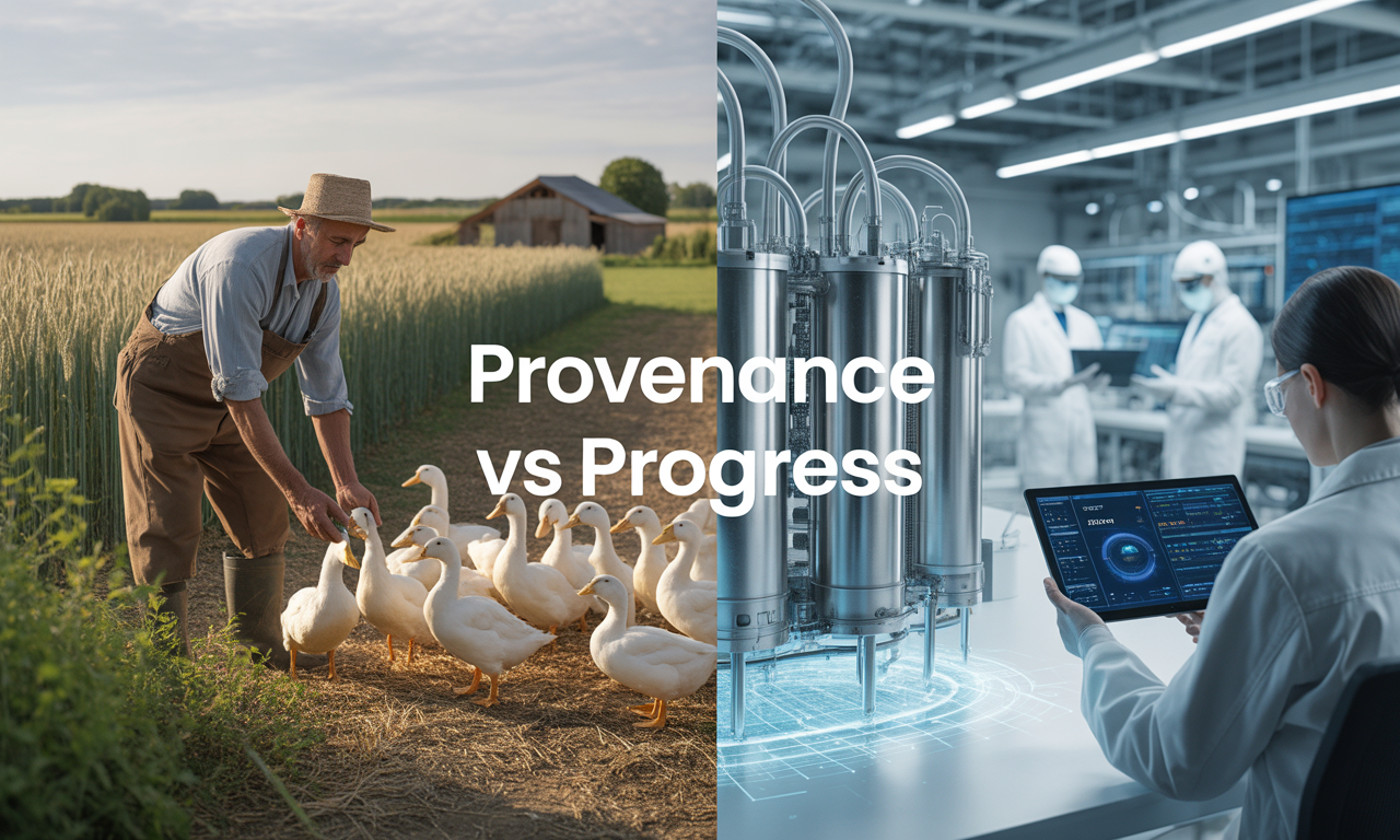 More than flavour — the real question is whether a dish like this can carry the same story and soul as traditionally farmed duck.